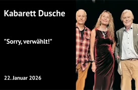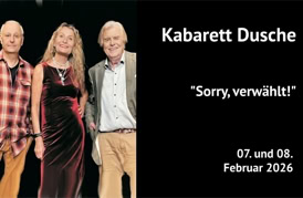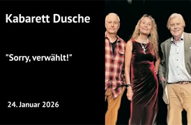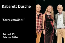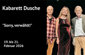 Zuguterletzt schauen dem ganzen Irrsinn aus 2025 dann noch einmal Onkel Fisch und Frederic Hormuth in ihren jeweiligen Jahresrückblicken mutig und humorvoll ins Auge. Und um es mit dem Kabarettisten Hennes Bender, dessen Programm Sie ebenfalls in diesem Spielplan finden, zu sagen: „Wiedersehn macht Freude“! Auch mit Thomas Freitag, der endlich wieder einmal mit neuem Programm unser Gast ist!